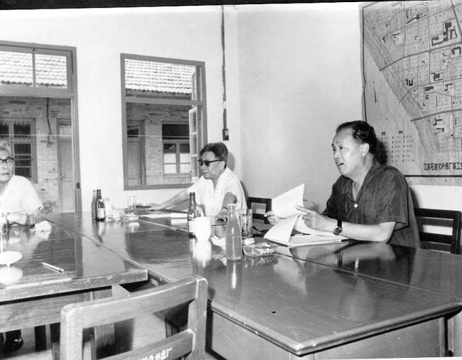 上个世纪八十年代初期,担任四川省委第一书记的赵紫阳(右),率队到江苏取经交流。江苏省委第一书记许家屯(中)出面接待。(许家屯提供)