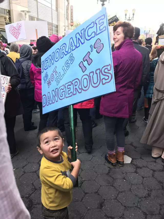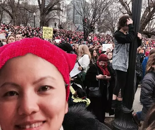 “今天是见证奇迹,缔造历史的一天。感谢新总统,全世界各大小城市的人们为了人类最该捍卫的自由与尊严走上了街头;感谢川二,成功成为第一名把我拉上街头的政客,跟波士顿超过17万五千的人们一起涌入市中心的公园,地铁免费但是挤得搭不上,市中心手机信号最强的地方因为人群过于密集没有信号,同行的战友纷纷失联,但是阳光明媚温暖如春,每个人都笑颜如花,因为我们在浩瀚的人群中感受到了人性的光辉和力量。”--S