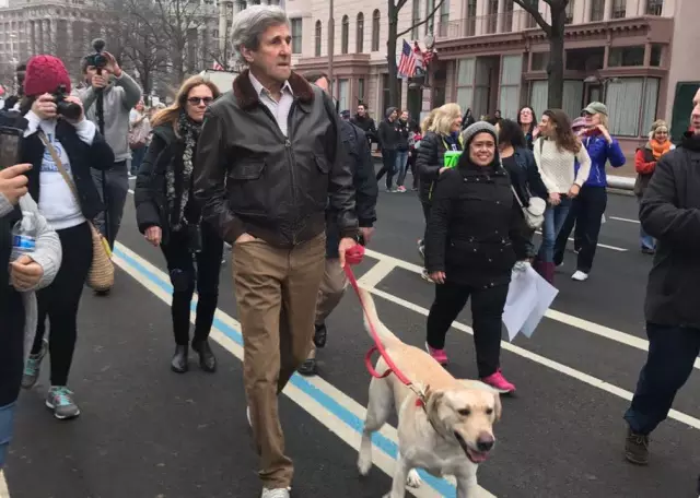 华人朋友拍到游行中的前国务卿John Kerry