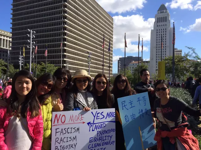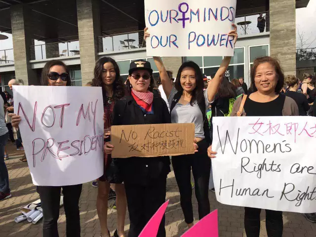 与以往只有在华人自身利益受侵害时才站出来不同,今天的女性大游行中,出现了不少第一代华人移民的身影,仅在今天临时组建的游行微信群中就有250多人实时分享各地游行现场图文,实际参加华人肯定更多。