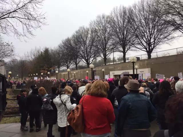 “今天与历史在一起。我早上十点在Rosslyn 是在第五部地铁上挤上去的,人贴人。人之多,场面之壮观,秩序之好,大家连垃圾都自己带走了。我没有看到一个警察在场,更没有部队人马,我们挤不到Rally 舞台前。所有人感叹:美国人民伟大!美国人民的民主自由素质无国家可比!不参加今天的集会,也许是一个世纪遗憾。昨天11点193K人乘坐地铁,今天11am, 275K 人乘坐。口号最多是"We are the People", "We need the leader, not tweet treater!"”--by网友Sherry