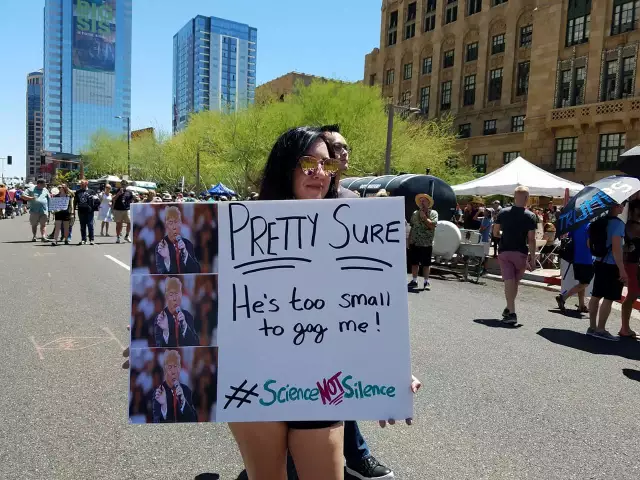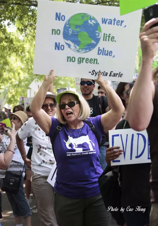 數萬名民眾集結在中央公園西側近哥倫布圓環(Columbus Circle),有的身著白色科學家長褂,有的以綠色服裝象徵環保,舉著標語寫著「科學事關重大」、「讓美國更加健康」、「停止削減科研經費」、「要科學不要沉默」等,反對川普對環境問題漠視和反科學的態度,呼籲其正確對待環境、停止削減醫療科研等重要領域的經費,為美國的長久持續發展打下堅實基礎。
