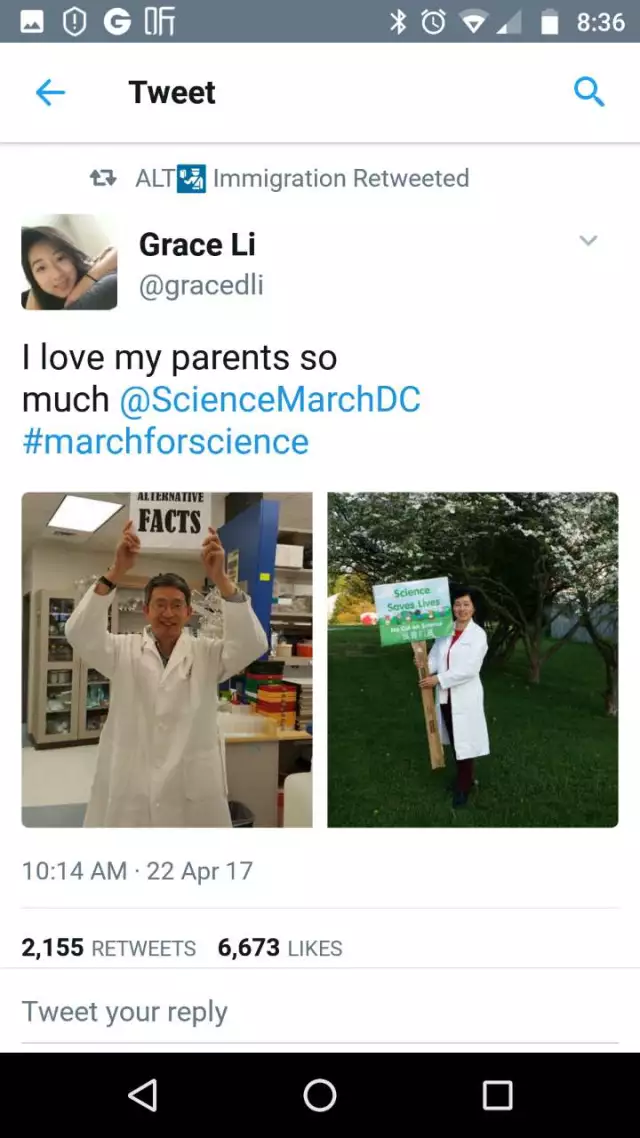 電腦科技業人員是亮表示,科學是促進人類成長的重要因素,但川普總統上任,刪減科學研究的經費,無疑是在削弱美國國力。他希望全美國許多城市的「科學大遊行」,能喚醒聯邦政府不削減國家衛生總署經費與裁減環保署人員。