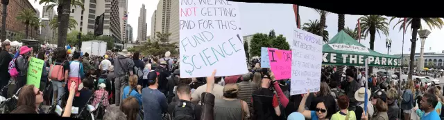 4月22日,从华盛顿到旧金山,从纽约到洛杉矶,从南极到北极,美国和世界各地超过600个城市爆发了“科学大游行”(March of Science),这样超大规模的科学家参与和支持科学的示威游行活动是史无前例的。从各种标语可以看到人们反对川普政府削减科研经费,反对川普的种种反智、反科学的言论和政策。关于本次大游行的背景,请参见昨天“美国华人”公众号推出的北大飞的文章《保卫科学,守护文明 —— 地球日“全美科学大游行”》。