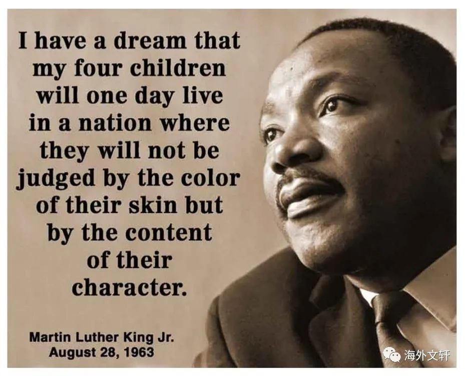 尤其對很多華一代來說,他們會說他們今天的日子比以前好了不知多少倍,他們是與曾經的母國生涯比的,沒錯,他們來到這個自由的國度,感受到沒有壓力沒有困擾,只要付出汗水就能有所回報,大多數的美國華裔勤勞致富,經濟上富足有餘,可是,他們的思想境界與這裡生這裡長的第二代ABC是有距離的!新一代早不把車子房子票子當作夢來實現了,他們要實現的是類似金博士提倡的“我們雖然遭受種種困難和挫折,我仍然有一個夢想。這個夢想是深深紮根於美國的夢想中的。我夢想有一天,這個國家會站立起來,真正實現其信條的真諦:我們認為這些真理是不言而喻的,人人生而平等。”——馬丁·路德·金〈我有一個夢〉