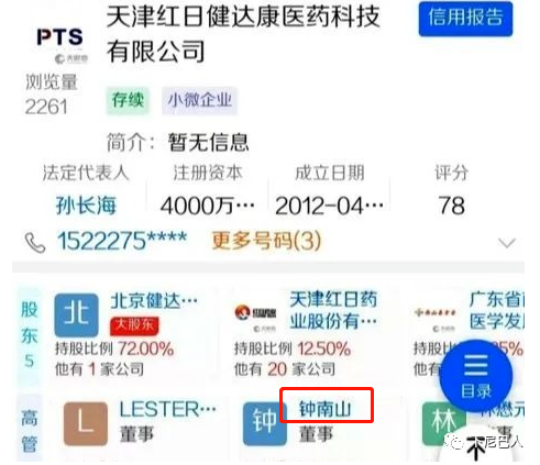 而鍾南山就是天津紅日健達康醫藥科技有限公司的董事。