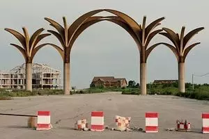 一些仿照意大利传统建筑而修建的购物中心。因为居民太少,这些购物中心还没有开业就已经关门了。