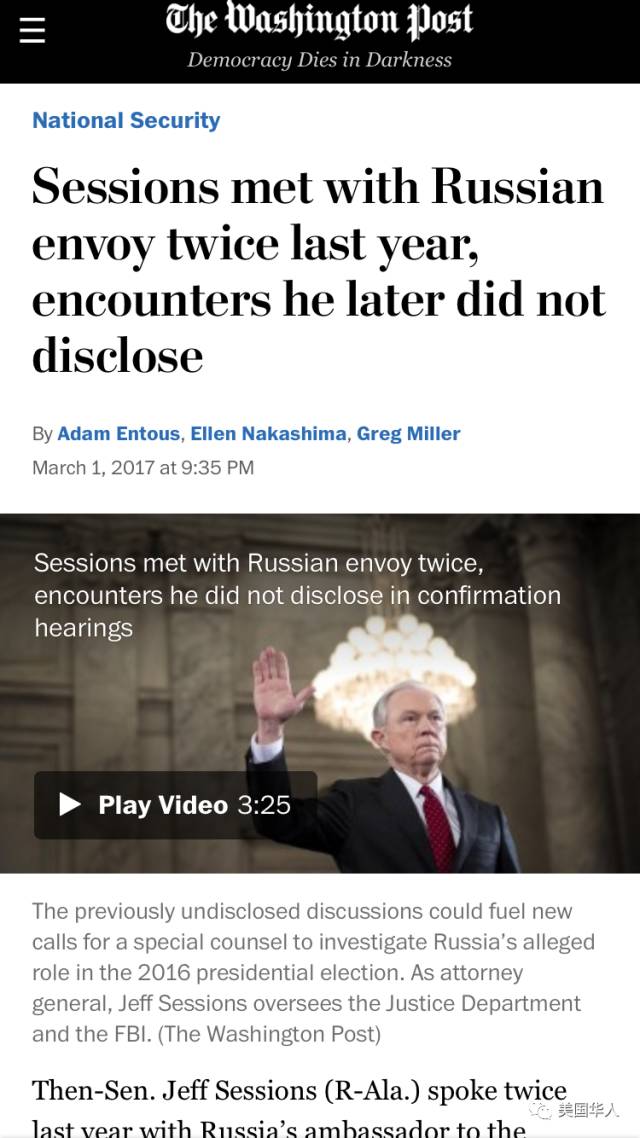 2. 重磅!司法部长塞申斯被踢爆对国会听证会隐瞒大选期间两次会见俄大使