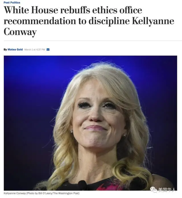 2. 白宫回绝道德办公室建议,拒绝对康薇进行纪律惩罚