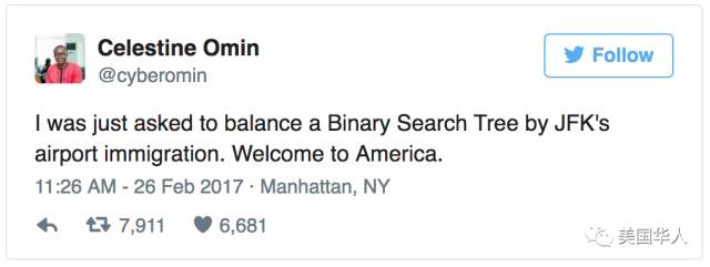以前觉得口岸检查官员翻看旅客手机微信朋友圈已经逆天了,现在一个非洲尼日利亚籍软件工程师欧敏就遇到了更为狗血的事情。欧敏赴美为一家创业公司开发一个市场方面的小应用程序。在纽约JFK机场入关时,他被CBP官员带到小黑屋,要求编写程序检查平衡二叉树以及说明虚拟类的作用和用法。虽说这些都是比较基础的程序员考题,但是经过长途飞机奔波近24小时没有合眼,欧敏已经累到几乎无法思考。最终答案显然没有被CBP官员所认可,图姐怀疑CBP官员有没有足够编程知识来验证回答的正确与否......
