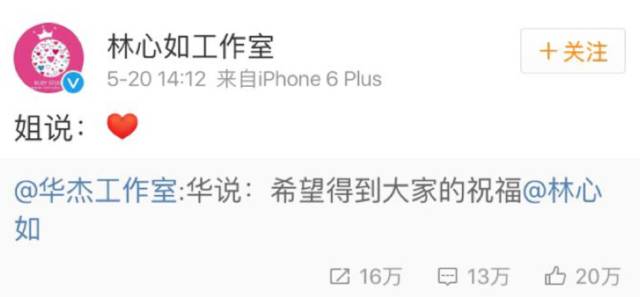 今天霍建华工作室突然在微博表示希望得到大家的祝福,并且@了林心如。随后林心如工作室回应。