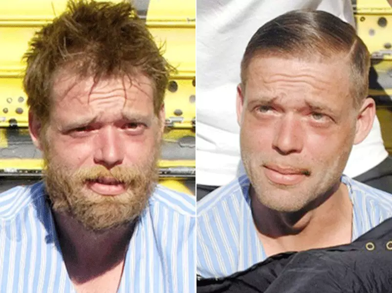 纽约有个叫Mark Bustos的高档发廊发型师,每个礼拜天都会上街给流浪汉们免费理发。被Mark的发型魔法棒点一点,流浪汉一个个变身Brad Pitt、科比,从一张给我十块钱的面孔,变成年薪百万也不稀罕的脸。