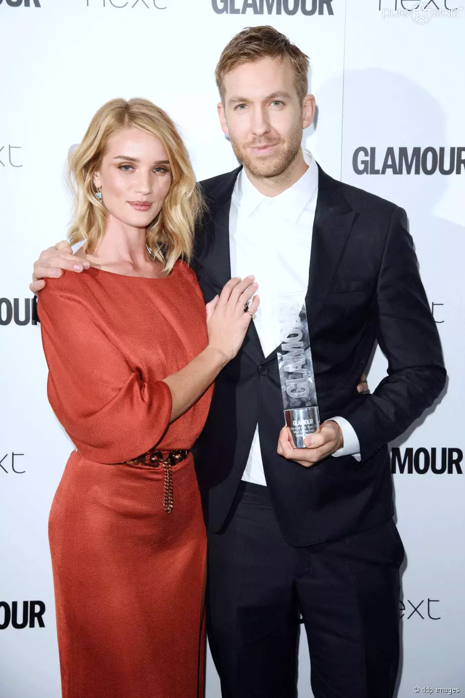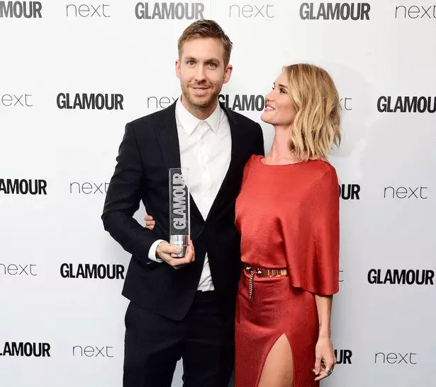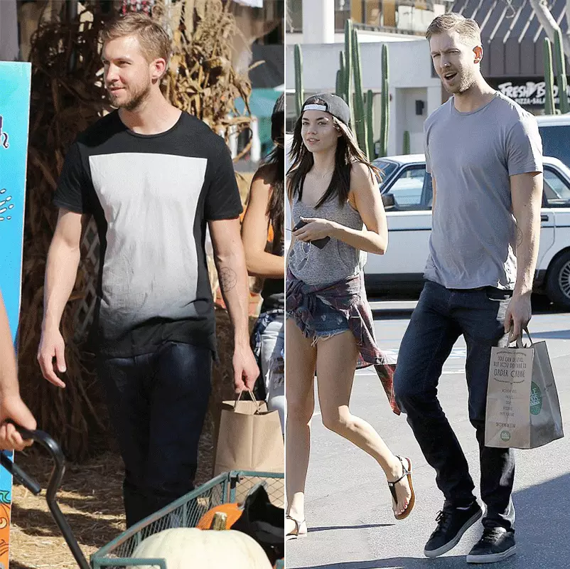 换上简洁的素色T恤,虽然不会让你的另一半帅到天边,但起码得体。当然,Calvin Harris穿得更好看,毕竟有胸肌在暗中撑场面。