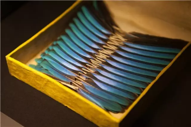 Cartier(卡地亞)檔案館中珍藏着一盒來自中國的翠鳥羽毛。1920年代,卡地亞曾運用點翠工藝來裝飾小時鐘的鐘盤。