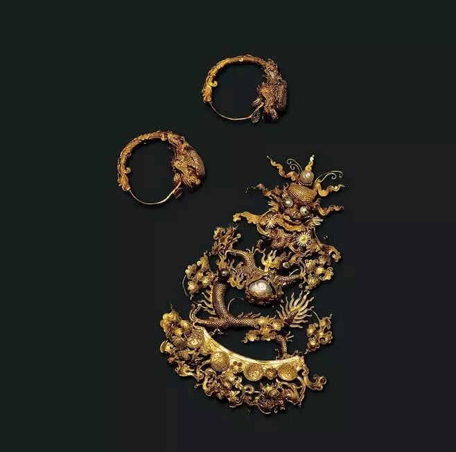 明朝的累絲工藝達到了頂峰,只要是皇家出來的飾品都是金絲亮晃的。崇尚純金的明朝僅僅用鎏金就能做出工藝極其複雜多變的飾品。