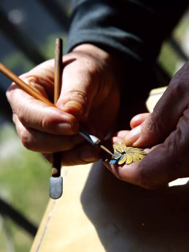 外國人稱這種珠寶工藝為“掐絲琺瑯”,這一叫法是舶來品,在中國叫花絲,將金銀拔成細絲,在工匠的巧手中幻化成各種模樣。
