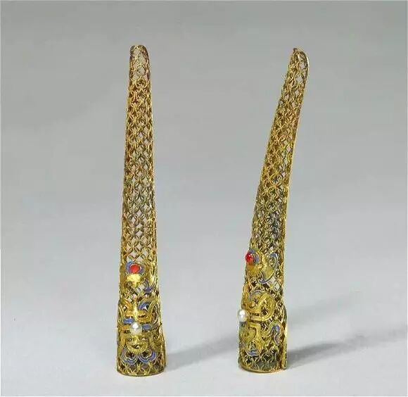 而即便是娘娘們做作的指甲套(清代滿洲八旗女子有留長指甲的風習),也是點翠的高級定製...