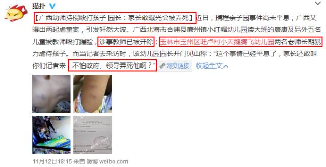 到广西幼儿园事后,辞退涉事教师。