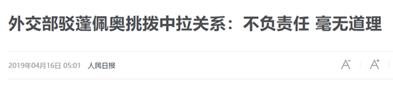 你们最近应该注意到到美国政府关于中国威胁的一系列表态。危机来自中方在拉美的商业行为,中方将腐蚀性资本注入拉美的经济血液之中,滋生腐败,侵蚀良性政府体系。