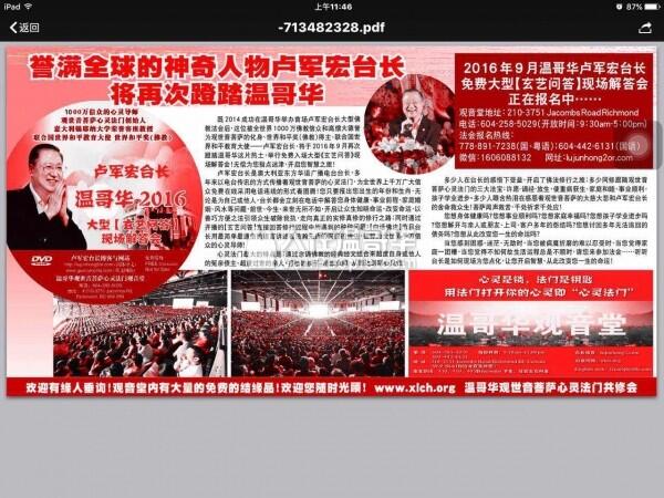 卢军宏台长2016年9月第二次来温哥华, 盛大举行千人“玄艺综述” 现场解答会。全世界已有一千万信众,您也可以亲自来验证念经不可思议的神奇力量,让它治好您的各种疑难病症、化解所遇障碍,甚至改变您的命运。