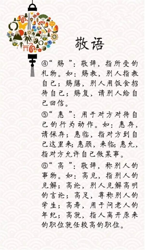 中华传统礼仪,没有敬烟陪酒,没有八面玲珑。传统礼仪用语之美,在朴实无华中透着一腔真诚!传统礼俗中诚敬谦让、和众修身的礼仪原则在当代社会仍然值得提倡。