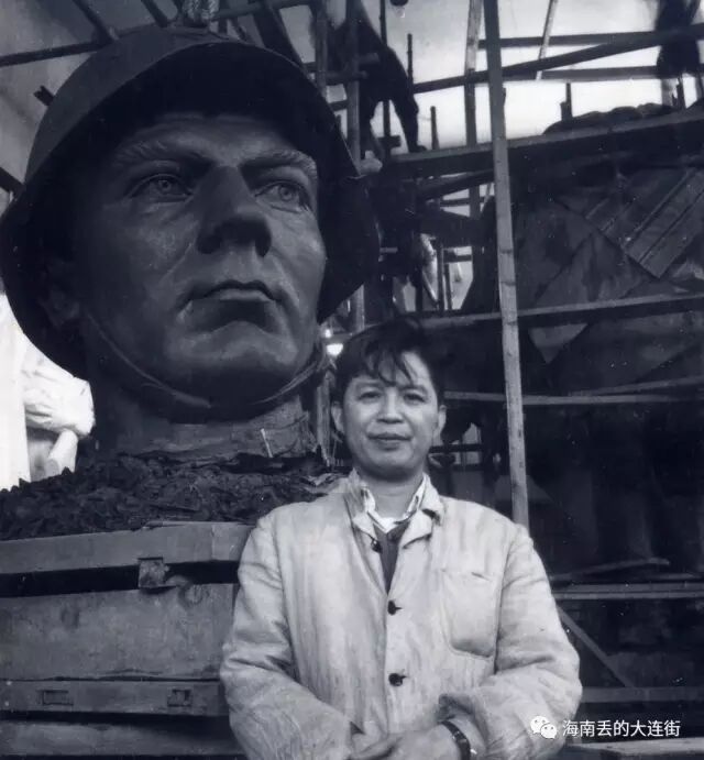 郭沫若1954年来视察大铜人制作(创作室在劳动公园内)~卢家荪提供