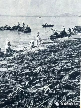 1959辽宁旅大水产公司三艘捕鲸船自春初出海以来, 已捕获3头长须鲸、11头小鰛鲸。 其中3头是一天之内捕到的。 这是一号轮捕获的一头30多吨重的长须鲸