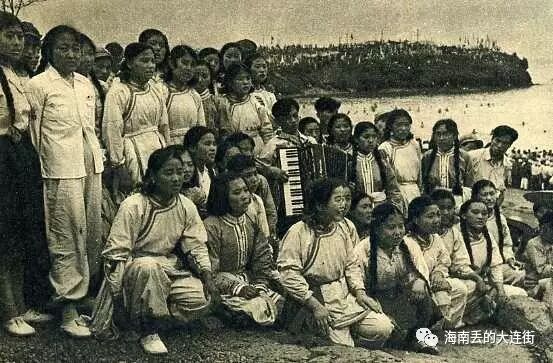 1953参加大会的旅大市食品工厂的女工在海滨唱歌