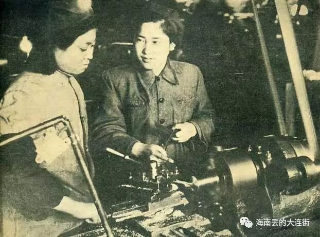 1951镟盘女工戚桂芝(右)是旅大区的一等劳动模范, 被选为东北人民代表大会和中国铁路工会全国委员会委员。