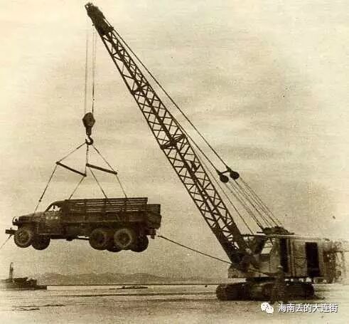 1952——15吨坦克式起重机从船上卸下运货汽车。
