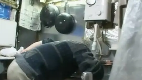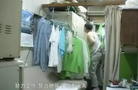 为了省钱,住的是最便宜的不带浴室的单人房 每天回家后,就用一个塑料布围起来洗澡