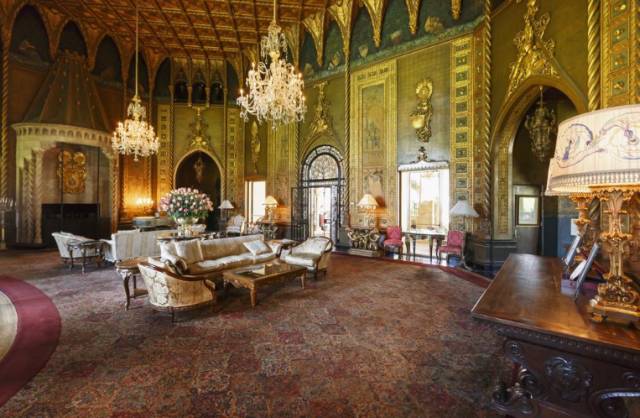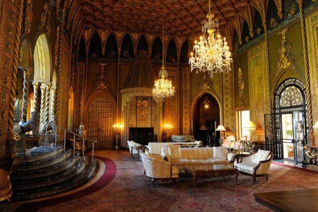 然后地产商川普大爷出现了。川大爷曾试图购买棕榈滩的另两处地产,都未能如愿;这个美轮美奂、有128个房间、并拥有可举行宴会和婚礼的巨大室外草坪的豪宅,一下子入了川大爷的法眼。