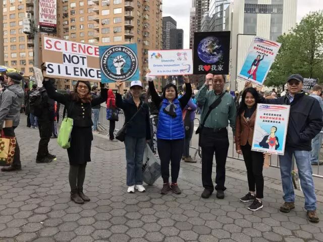數萬名抗議者22日地球日於曼哈頓參加「科學大遊行」(March for Science),批評川普總統狠削環保、衛生機構預算。華裔示威者紛紛指出,川普大砍科研經費,顯示政府絲毫不尊重科學,讓下一代活在污染之中,而許多華人屬於技術移民,獲利於美國科研發展,更該「飲水思源」向川普政策說不。