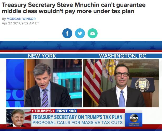 连川普的财政部长Steve Mnuchin都表示:“他无法保证不会增加中产阶级的税。”