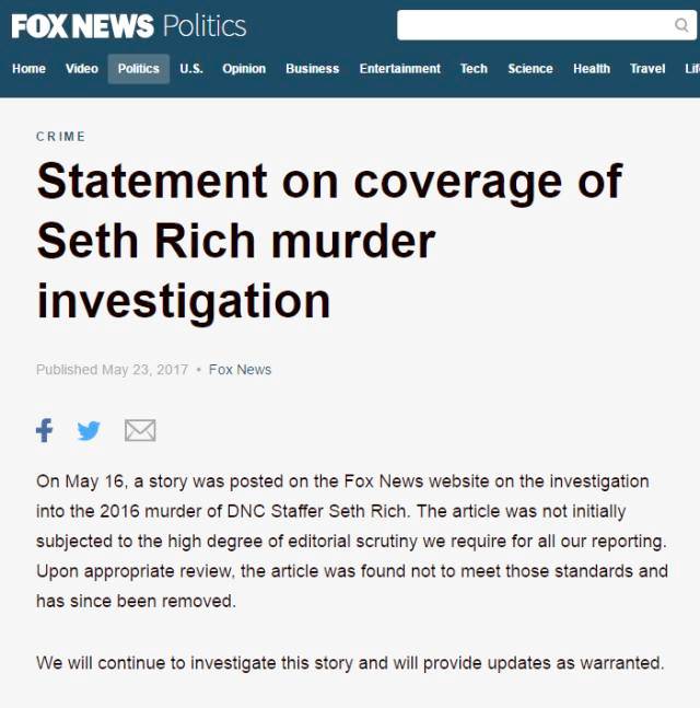 即便是一向挺特朗普的右翼媒体如Fox News也存在纠错机制,譬如解雇性丑闻缠身的主持人O’Reilly和撤回关于“民主党大会前职员Seth Rich死亡以及他和维基解密阿桑奇的关系”的错误报道,其理由和这次CNN撤稿差不多,也是不符合内部审核程序。