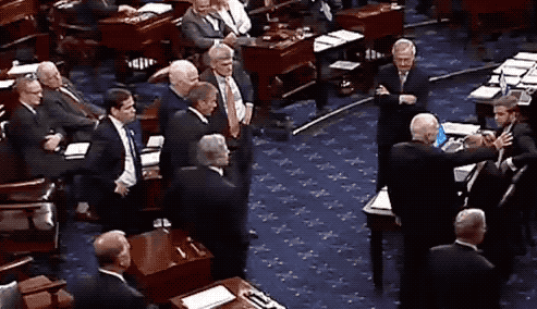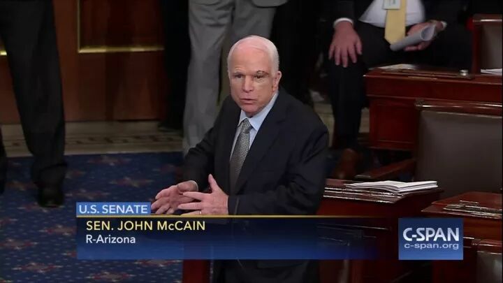 (上一次投票中麦凯恩投出历史性的否决票的一刹那)