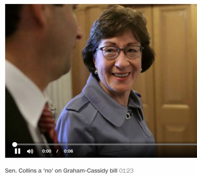 缅因州议员Susan Collins(苏珊·柯林斯)。反对理由是Graham-Cassidy议案不能给有疾病史的人群提供足够合理的保护,同时将帮助穷人为主的Medicaid(医疗补助) 削减太惊人。