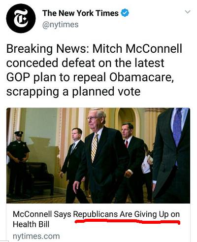 近日大新闻,共和党本计划在9月30日的最后期限前,发起最后一轮废除奥巴马医保的尝试。然而,随着今天参议院多数派议长,Mitch McConnell(麦克康奈尔,赵小兰的老公)宣布,共和党凑不到所需要的参议院至少50票,最后一次尝试废除奥巴马医保的努力失败。