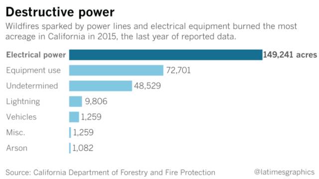 10月17日,LA Times总结了以往野外火灾的成因,绝大多数系输电电缆和电力设备引发。