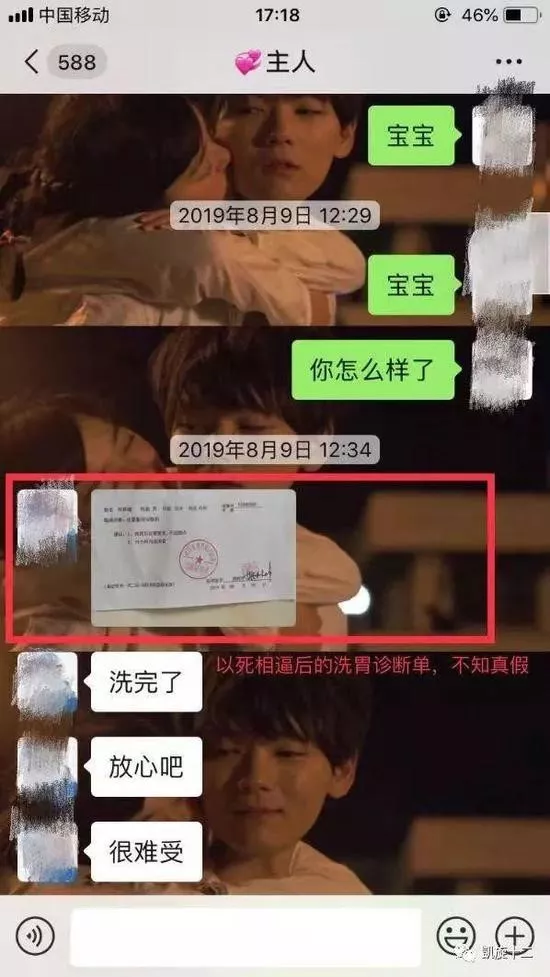 在那段时间,牟林翰给给包丽发了一张洗胃的诊断证明,把自己自杀归结到包丽身上。