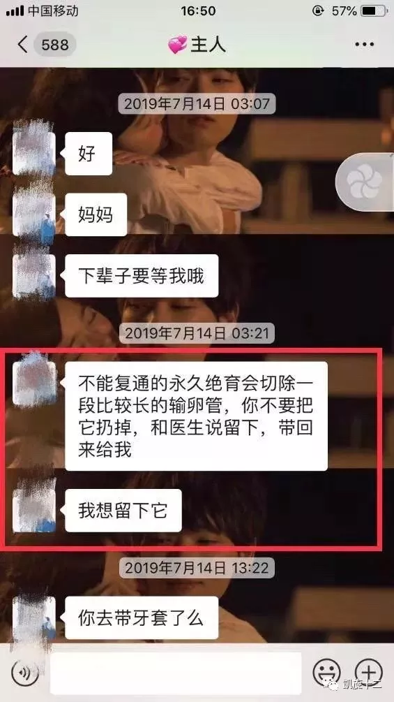 对包丽的精神控制最后变成了对包丽身体的残害,他让包丽为他切除输卵管,永久不能生育。还让包丽把切除的输卵管带回来给他。