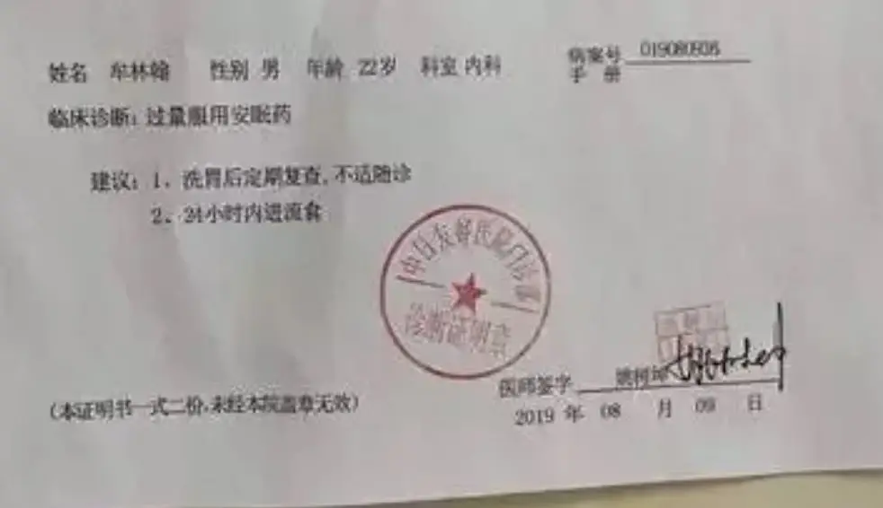 不论是医生的签名,还是在洗胃这件事上舍近求远,最后都指向诊断书是伪造的这一种可能。