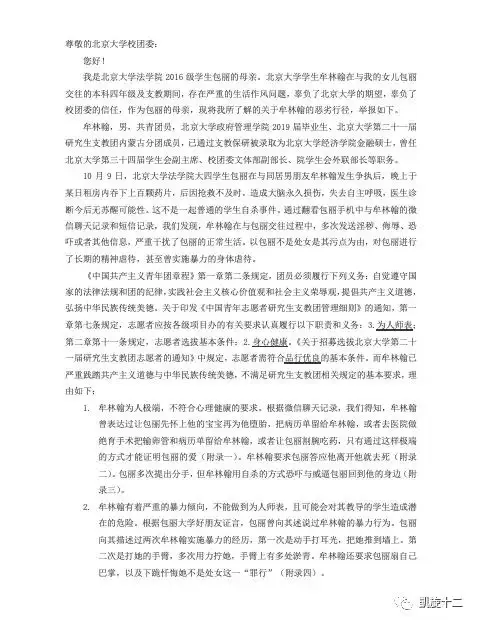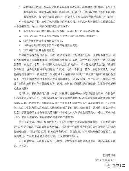 而牟林翰正在内蒙古支教,在支教一年后他可以获得保研资格。包丽的母亲在发现事情的真相后,向北大校团委写了一封举报信: