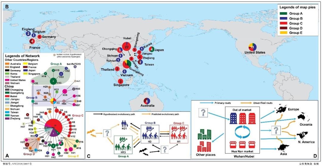 其实看一下论文中说的,就大概明白了:11个案例中,11种类型,相互没有人传人。上上一个图,划红线的地方。 那么就很简单了:全部是输入型。 所以,美国“五毒俱全”,不一定表示美国是原始发源地,也许只能说明美国的输入源多样且复杂。这也符合美国世界航运中心地位。四面八方人都会去美国啊! 联想到,美国率先主动中断跟中国之间的航班,大家就可以理解为啥了。 美国也有美国的特殊国情,也有难处啊! 所以,现在流行很广的说法:美国有可能是此次新冠肺炎的发源地,完全是禁不起推敲的。因为“爷爷辈”H13和H38,都是起源于武汉。只不过因为某些原因,没在武汉泛滥而已。 而且,日本和其他地方,有一些病例,同样不是来自武汉,而是来自广东!但是如果我们懂得H13的历史,我们就知道,源头还是在武汉! 不过,武汉找不到H13和H38的原因,其实还有另一种可能:因为武汉H1型太多,也许有H13和H38,但样本太少,未能覆盖到。 这种可能性不能排除。 因为这篇论文一共才引用到93个病例。覆盖面很小,而且全部都是12月下旬以后的采样。 要追根溯源,当然需要12月8日和早于12月8日的案例。但可惜这一块目前没有发现、付之阙如。所以,因此而得出的种种结论,其可信度有多少?大家自己揣摩。 我们讲明白这些辈分之类的事情之后,我还要讲几个事。 第一,美国之前因为电子烟死的人,会不会是新冠肺炎?尽管台湾专家和众多自媒体文章说得有鼻子有眼的,但我要问一个问题,如果电子烟死的人当中确实有新冠肺炎患者,那为什么他们的家庭和朋友没有被传染?在美国那样医学发达的地方,一旦有几个这样的家庭聚集性传染案例,能不暴露出来吗? 如果,美国医生真的全体睡着了的话,新冠肺炎早就从去年9月开始在美国大范围传播了,我们武汉从1月初到现在传染了7万多。这种速度放在美国,以美国“佛系管控”的应对方式,恐怕美国到现在人已经全死光了吧? 第二,关于日本质疑美国是新冠肺炎源头的那件事,其实我都不想多说,因为这件事早几天就被辟谣过了。腾讯较真就有相关文章,也可以去美国CDC看原话。我真的不想重复再去辟已经被辟过的谣。 第三,还有一些自媒体文章说伊朗的前三个确诊者都没去过中国,其实并不是的。伊朗的第一个病人是一个经常来中国的生意人。 第四,说意大利第一个病人接触过中国人,吃过一顿饭,但那中国人核酸阴性。其实,检测时核酸阴性未必说明这个中国人没传染过病毒。国内很多例子,大家也都有了解。有些人轻症,自己没当回事,就自动好了。有些人阳性,但不发病。所以,意大利这个病人接触的中国人,很可能当时有阳性,但后来好了。 好了。综上,我们已经弄清了。光凭发表在中科院科技论文预发表平台上这篇2月21日提交的,名为《Decoding evolution and transmissions of novel pneumonia coronavirus using the whole genomic data》的文章,我们并不能认定美国是新冠肺炎的发源地! 这张大图也送给大家。里面包括了几个小图。大家闲着没事看看也好: