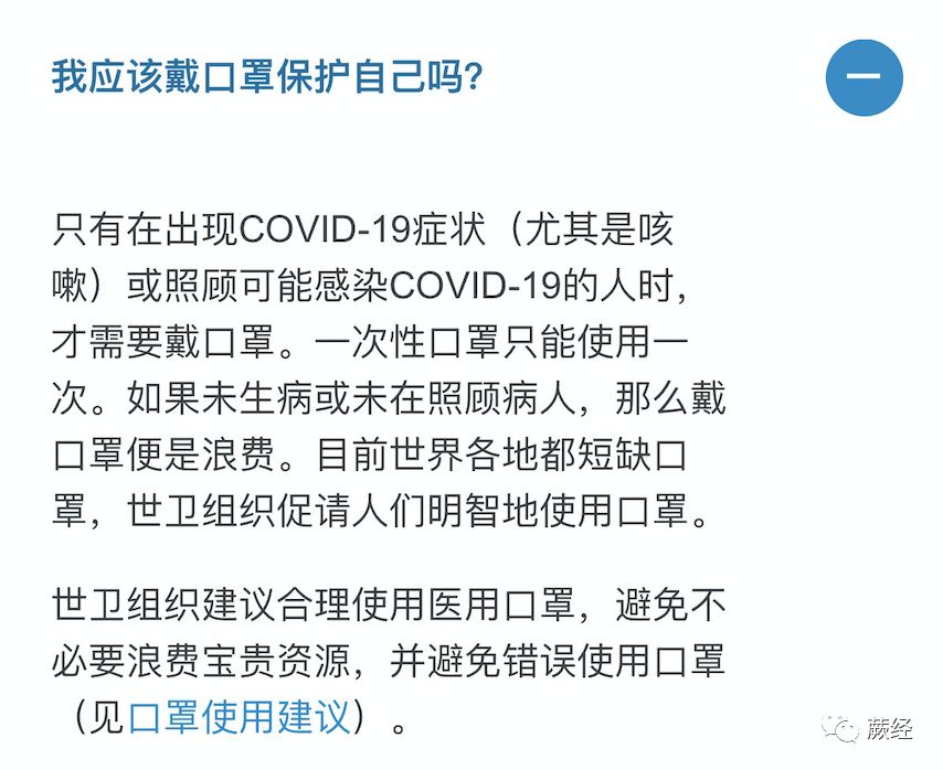 ↑既然这样我甚至觉得这个关于口罩的翻译明显不符合中国目前的操作实情,是否也应该修改,也应该提供专门给中国人看的版本?