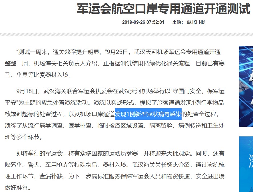 2)为什么在武汉军运会之前湖北甘肃同时举行了防新冠病毒演习?名字和现在流行的病毒一字不差。这是巧合还是先知先觉?