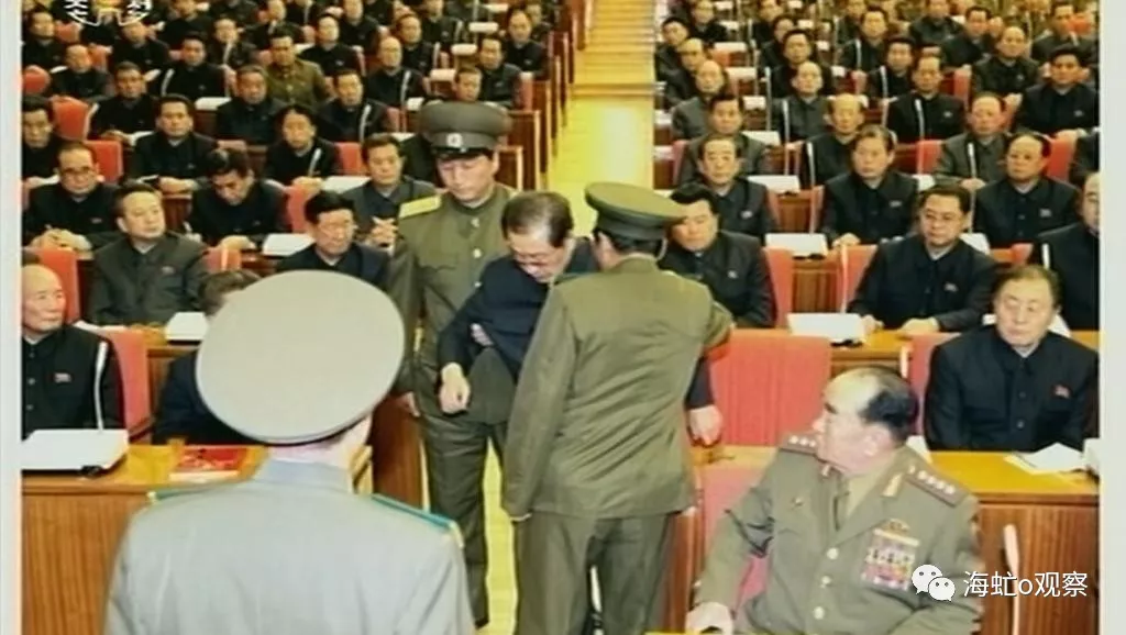 朝鲜电视台还公开播放金正恩的姑丈张成泽遭到逮捕的画面