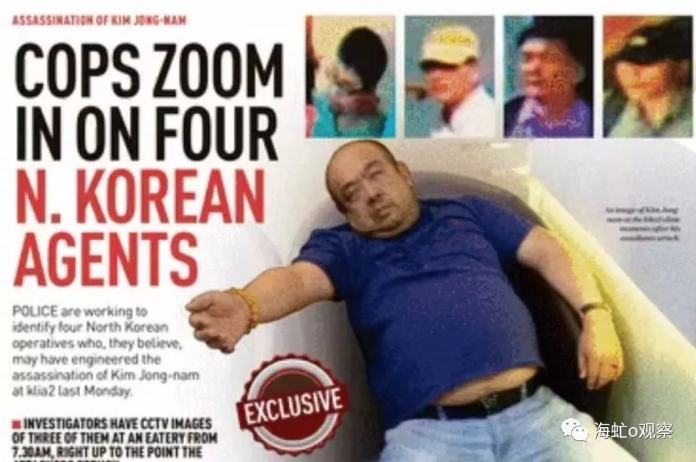 Original o朝天椒o 海虻o观察 2019-11-23 毒杀金正男 2017年2月13日,马来西亚的吉隆坡机场,金正日的大太子金正男在航站楼被两个神秘的女人用VX神经毒剂捂杀身亡。事件爆发后,国际世界一致怀疑金正男是被朝鲜政府策划的行动暗杀,但朝鲜政府不仅竭力否认主导此事,连死者是金正南都予以否认,而且还在公开的舆论场合,作无辜状怒指马来西亚勾结敌对势力诬陷抹黑朝鲜——这大概就是极权国家的一贯思维,以为掩了国内的耳目,好像也就掩了世界的耳目——这使得本来和朝鲜关系不错而顾及其颜面的马来西亚忍无可忍,随后举行了发布会,并公布了相关视频。 发布会上,马来西亚警方毫不客气地指出,谋杀金正男的凶手共有9男2女11人,目前包括2名女子和1名朝鲜籍男子等4人已经被马方逮捕,但另外7名男子在逃。这7名男子中,6人是朝鲜籍,其中4人已在暗杀当日飞回平壤,另外2人仍在马来西亚,一位是朝鲜驻马来西亚大使馆二等秘书玄光成,一位是朝鲜高丽航空职员金玉日。马来西亚警方特别指出,金正男遇害时,玄光成和金玉日都非常可疑地出现在了案发现场,朝鲜政府应该配合马方对两人的传讯,否则马方有权采取强制措施。