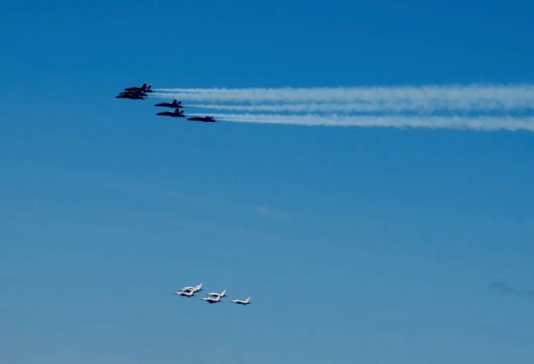 整齐划一的飞行表演,是全美享誉世界的两大特技飞行表演队-雷鸟表演队和蓝天使表演队,应国防部邀约,舞给“暂停PAUSE"的纽约城里,一线逆行者的“空中芭蕾”,也是送给疫情阴霾中,依然坚持的所有纽约客的蓝天之礼。