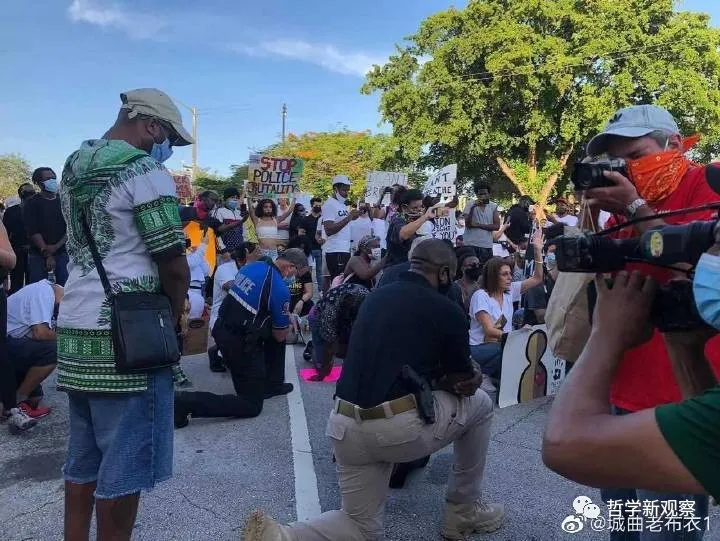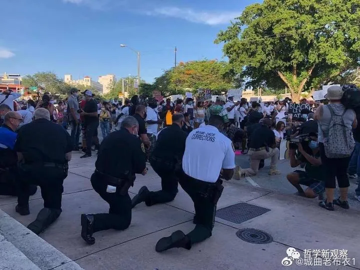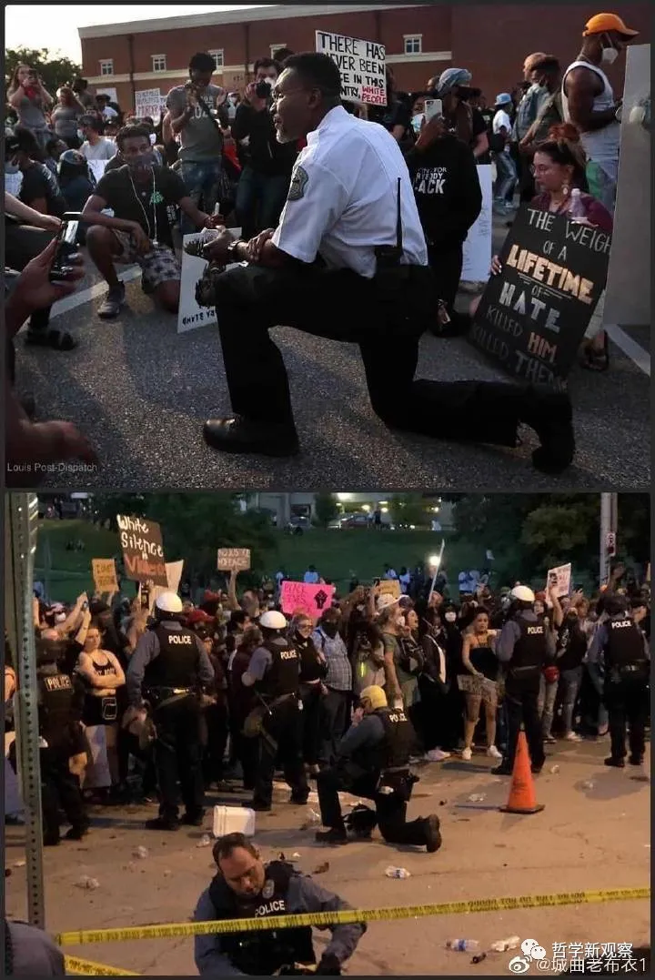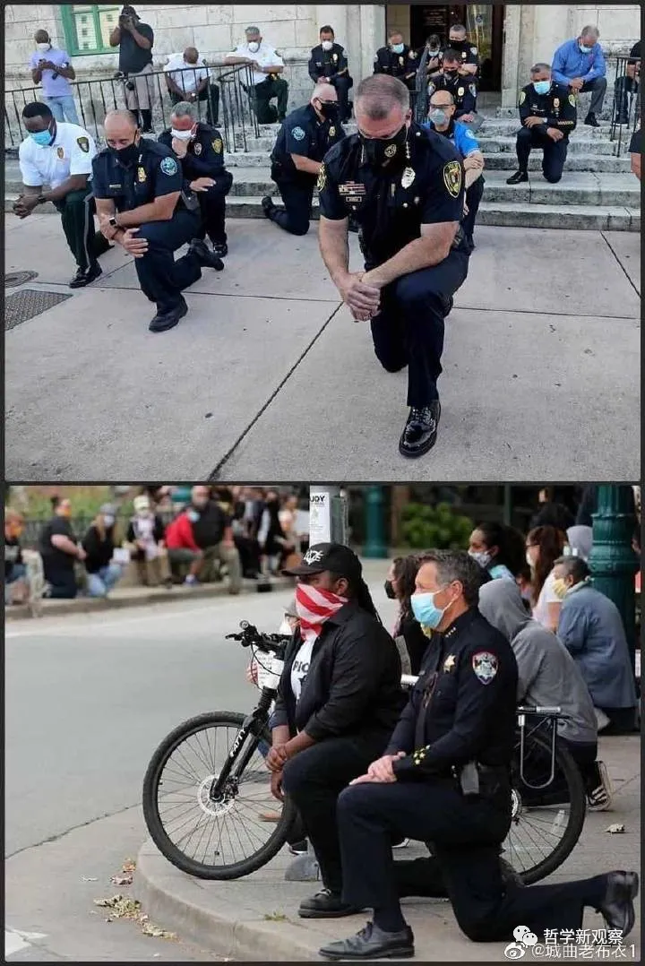 哲学新观察 Today 美国各地警察单膝下跪,悼念逝者,为美国祈祷,祈求和解,停止骚乱。